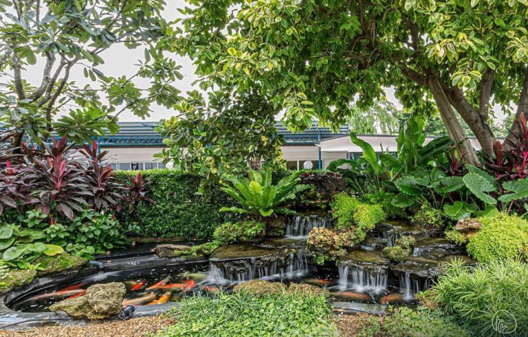 Taman air dengan kolam atau air mancur memberikan suasana yang damai. Suara air yang mengalir dapat menjadi terapi tersendiri.
